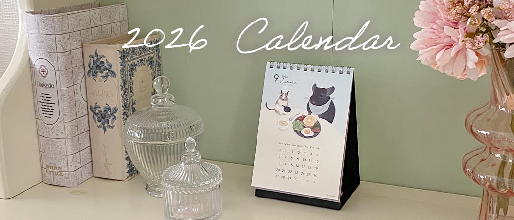 ほっと心が癒される、小さなメルヘンの世界。 毎年ご好評いただいている MarkCrownオリジナルカレンダー が今年も完成しました。 チンチラとデグーの季節ごとの物語を描いた12枚のイラスト。 1枚1枚を丁寧に描き上げた“小さな作品集” のような贅沢な仕上がりです。 A6サイズで、お部屋の片隅やデスクに置くのにぴったりです。 ふんわり優しいタッチのイラストが、あなたの日々をやさしく彩ります。 サイズ:A6